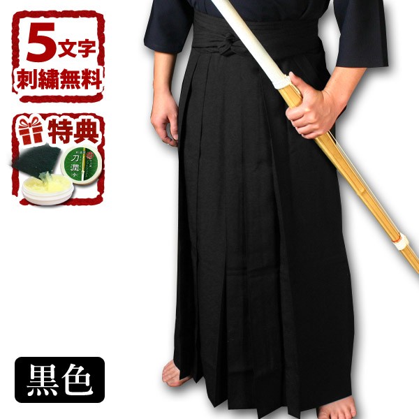 [剣道屋] 黒色 ジャージ剣道袴 『凛然』 しわにならずヒダが取れない 【5文字無料+ワンポイント無料】★竹刀WAX付●「凛然・黒(クロ)」 ジャージ袴
