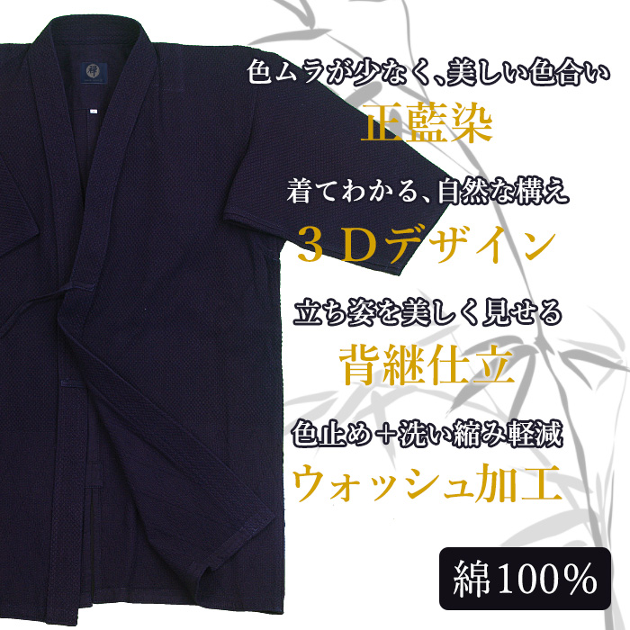 【加工所取寄せ品】 剣道着 一重 正藍染 ●[禅] 特上一剣剣道衣 <3Dデザイン>