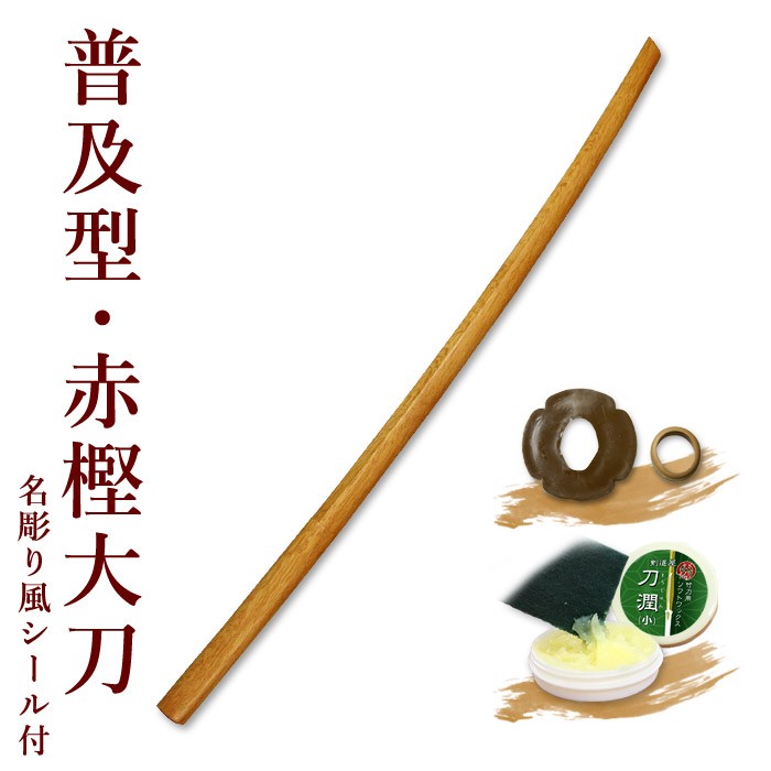 剣道 木刀 大刀 【普及型】 赤樫木刀 (大刀) 鍔、鍔止め付 【 剣道 木刀 審査用 剣道形用 素振り用 防犯 護身用 】