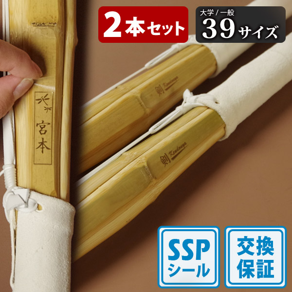 【SSPシール付・安心交換保証付】 2本セット 剣道 竹刀 39サイズ 床仕組完成竹刀 無銘 「剣kendouya」 送料無料 まとめ買い