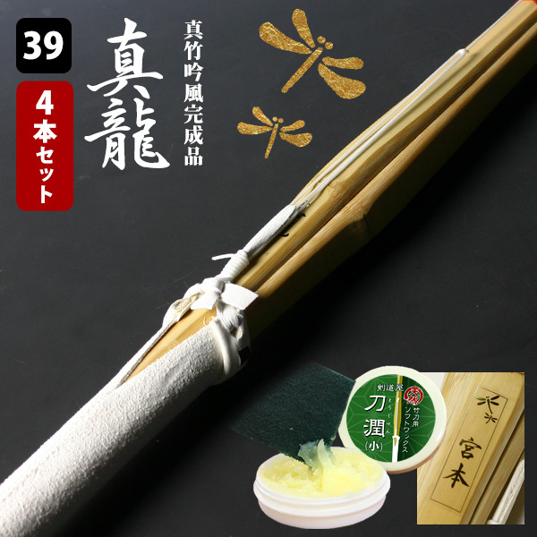 剣道 竹刀 「真龍・真紅」真竹吟風仕組み完成竹刀 39サイズ 4本セット