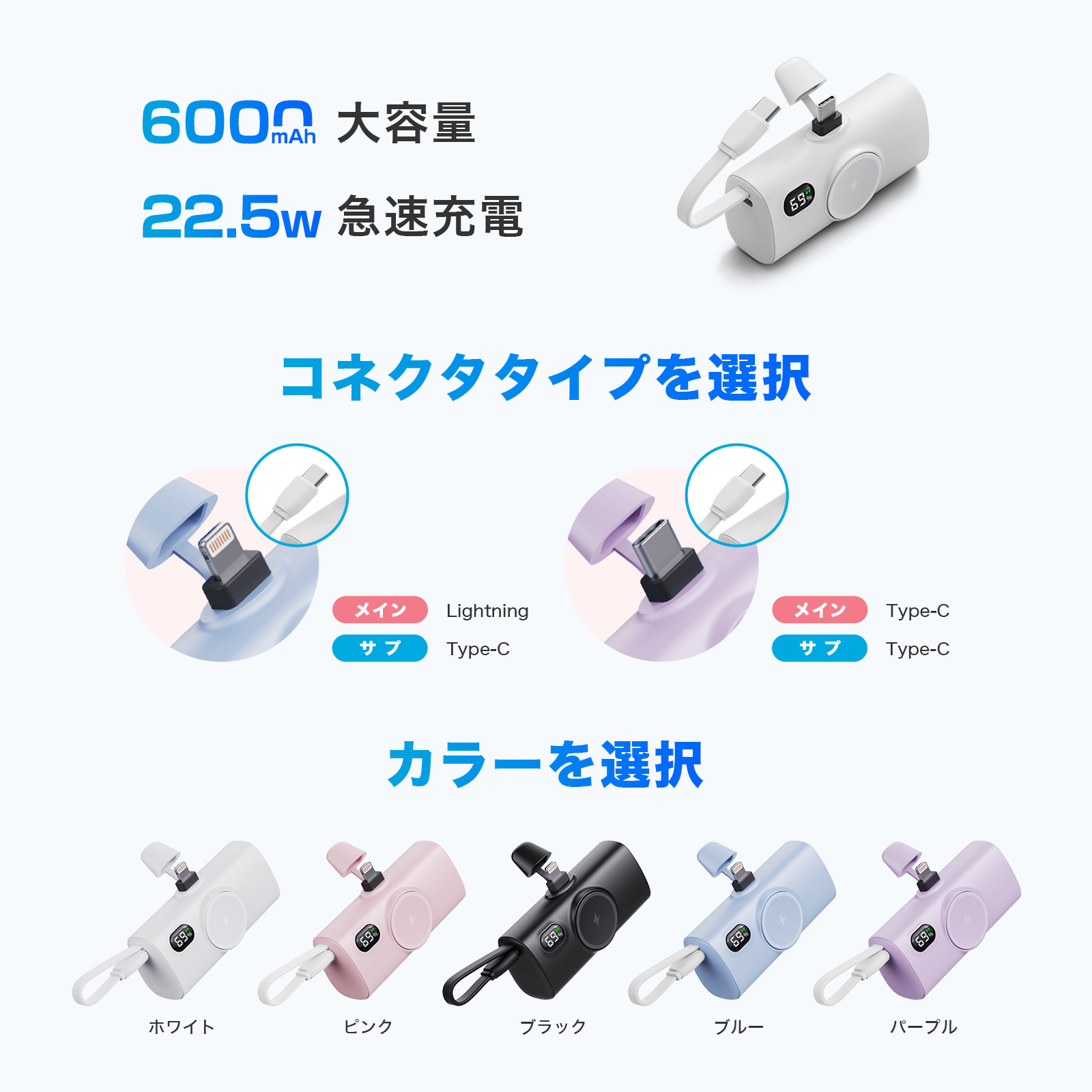 【大容量6000mAh】6000mAhの大容量、外出先でも安心して使えます。