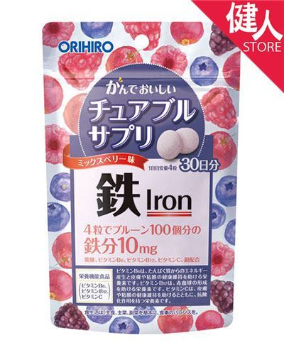 「かんでおいしいチュアブルサプリ 鉄 120粒」は、鉄分を美味しく摂取できるミックスベリー味のチュアブルの製品です。1日目安量4粒中でプルーン100個分の鉄分10mgが補給できます。ポリポリ食べられる美味しい食感や、果汁を使用することで本格的な美味しさに仕上げ、気軽に美味しくお召し上がり頂けるます。お子様から大人まで幅広く、日々の健康維持にお役立て頂けます。栄養機能食品(ビタミンB6、ビタミンB12、ビタミンC)