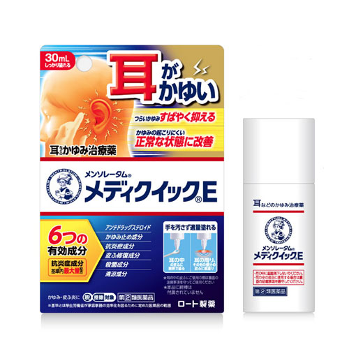「メンソレータムメディクイックE 30mL」は、耳などのつらい痒みを素早く抑える治療薬です。痒みの起こりにくい正常な状態へ改善します。手を汚さず適量塗れるダイレクトノズルを採用。綿棒を使って耳の中の皮ふに塗れます。(なお、本品に綿棒は付属されてませんのでご注意ください。)また、耳の周りやその他の部分の皮ふなど、耳の中以外の皮ふには直塗りしていただけます。
