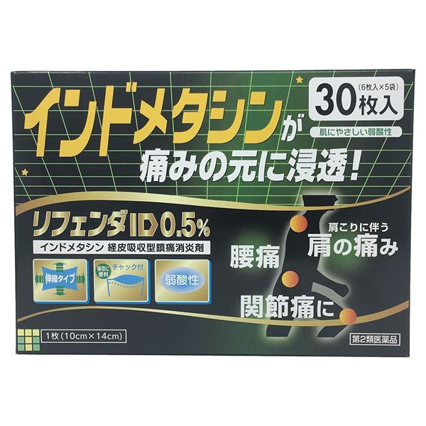 「リフェンダID0.5%」は、肩・腰・関節などの痛みにすぐれた効果を発揮する鎮痛・消炎パップ剤です。インドメタシンが患部に直接浸透し、痛みの原因プロスタグランジンの発生を抑えます。伸縮性に富んだ不織布を使用しているため、すぐれたフィット感が得られます。