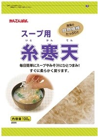 「スープ用糸寒天」は、毎日飲むスープや味噌汁にひとつまみ入れるだけで食物繊維の補給ができます。