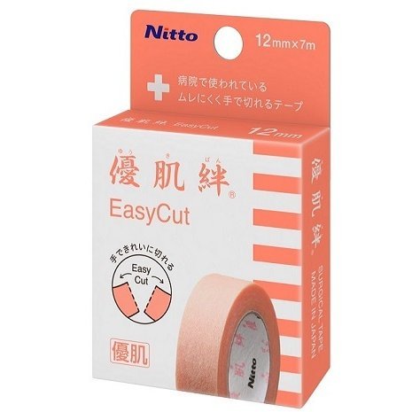「優肌絆EasyCut 12mm×7m」は、優肌絆の優しさそのままに、手切れ性をアップしたミシン目入りのサージカルテープです。