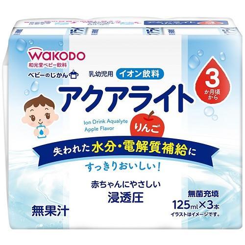 「ベビーのじかん アクアライト りんご」は、赤ちゃんの体内にすばやく吸収されるように水分やイオン(電解質)を設計したベビー飲料です。