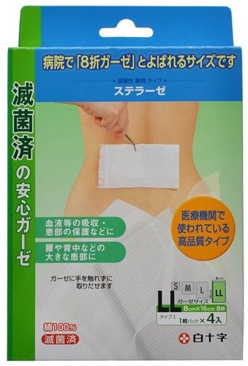 「FCステラーゼ LLサイズ」は、1枚ずつ個包装、滅菌されているので傷口にも安心のガーゼです。