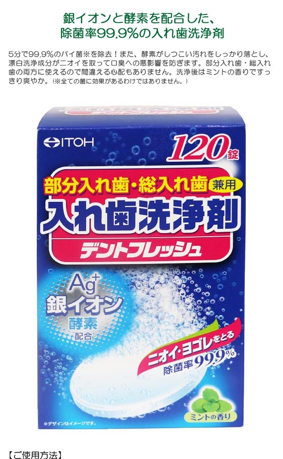 分入れ歯・総入れ歯の両方に使えるので間違える心配もありません。洗浄後はミントの香りですっきり爽やか。
