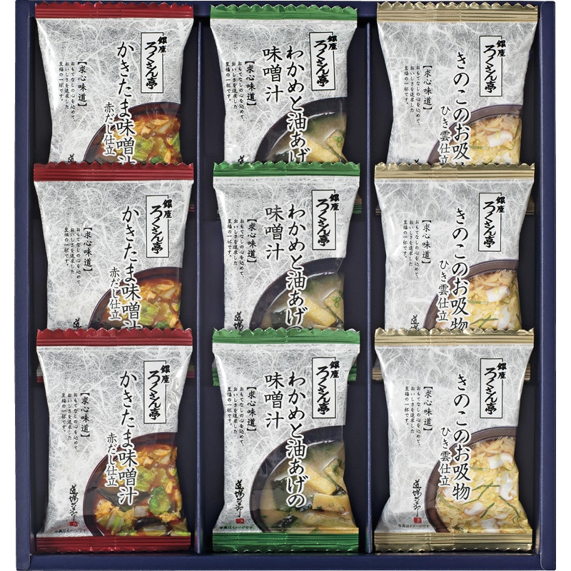 ●セット内容/きのこのお吸物ひき雲仕立・わかめと油あげの味噌汁・かきたま味噌汁赤だし仕立×各3