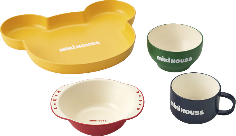 ロゴと原色のマルチカラーでミキハウスらしいテーブルウエアセットです。大皿はくま型のデザインで、くまの耳部分にお椀がぴったりはまり、コンパクトにお片付けができます。一点ずつ職人の手作業で作られています。ハンドメイドならではの温もりをお楽しみください。