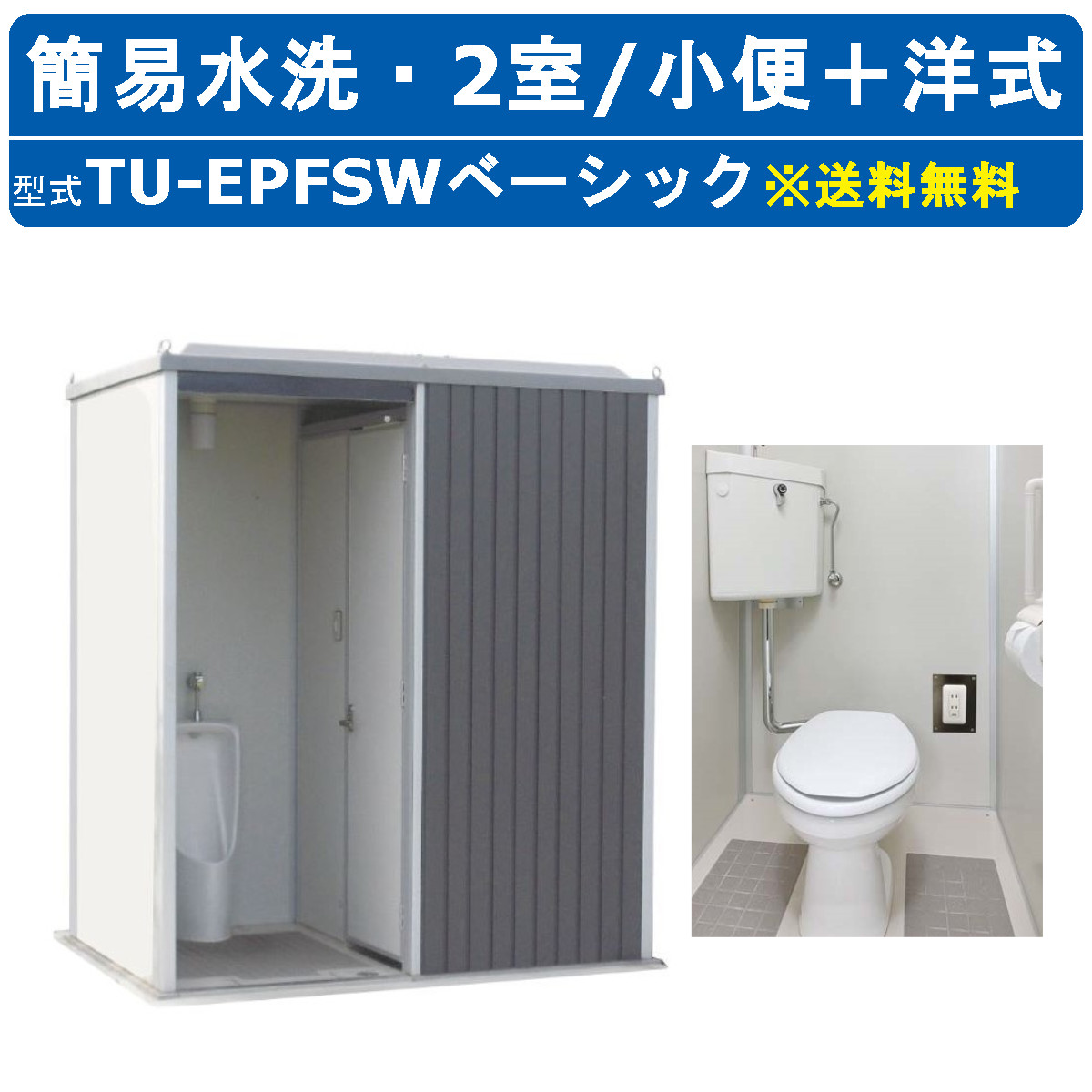 ハマネツ トイレユニット TU-EPFSW ベーシック エポックトイレ 簡易水洗タイプ 2室 小便+洋式 仮設トイレ コンパクト 建築現場 作業所 倉庫