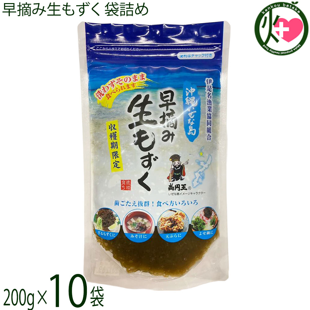 最初に収穫される「もずくの新芽」は、沖縄では「早摘み」と呼ばれています。収穫期のはじめである3?4月頃に採れる「早摘み生もずく」は量が限られており、細く繊細なため長期保存向けの塩蔵加工には適していません。その希少性から「幻のもずく」とも言われています。一本一本が細かく、独特の食感とみずみずしさが特徴です。伊是名島のもずくは、ラグーンに囲まれた環境で太陽の光をたっぷり受けて育ちます。栽培中は、漁師が海に潜って大きな異物を取り除いたり、光が行き渡るように間引きを行うなど、丁寧に手入れをしながら育てています。熟