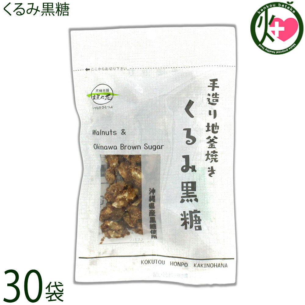 沖縄産のサトウキビから採れた粗糖、黒糖、糖蜜を直火で丹念に煮詰め、くるみに絡めた手造りの加工黒糖です。