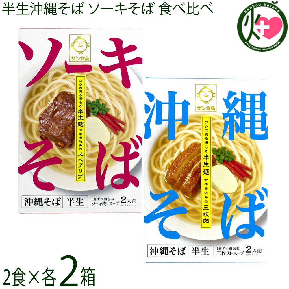 三枚肉沖縄そばとソーキ肉沖縄そばの、食べ比べが楽しめる2種セットです。