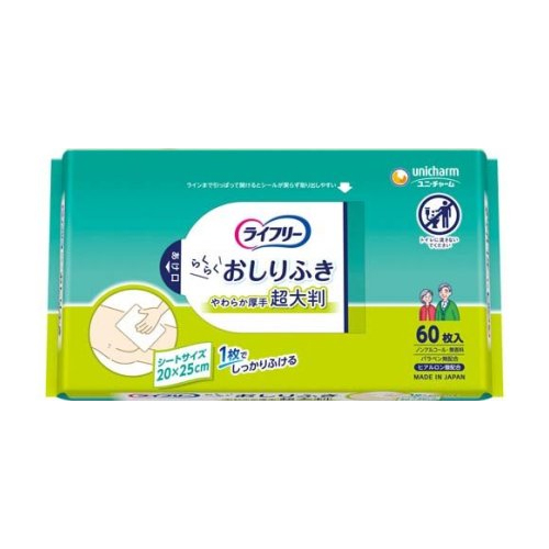 | 検索用文言 | ユニチャーム ライフリー おしりふき超大判スッキリ 60枚入り(介護用品 大人用お尻拭き) |