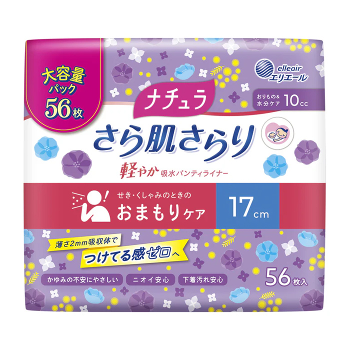 検索用文言 | [大王製紙]エリエール ナチュラ さら肌さらり 吸水パンティライナー 17cm 10cc 56枚入(吸水ナプキン 尿漏れ 吸水ケア 衛生用品 大容量) |