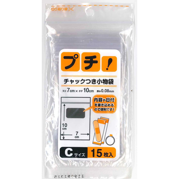 【ゆうパケット配送対象】[日本技研工業]プチ チャック付き 小物袋 透明 PS-C 15枚入(袋 ジップ チャック チャック付き 小分け 小分け袋)(ポスト投函 追跡ありメール便)