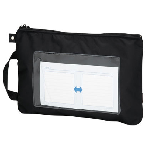 [クラウン]メールバッグ A4判 マチ無Wファスナー ブラック[CR-ME04-B]