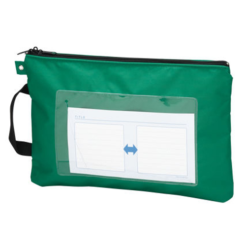 [クラウン]メールバッグ A4判 マチ無Wファスナー グリーン[CR-ME04-G]