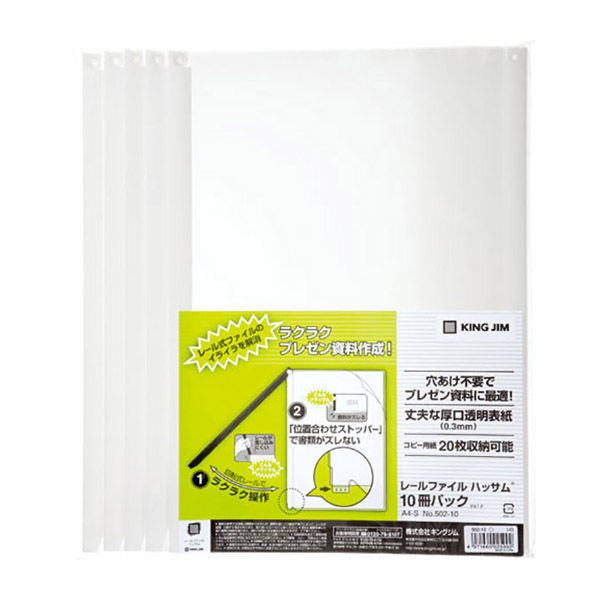 キングジム レールファイル ハッサム 白 A4 502-10(10冊パック)