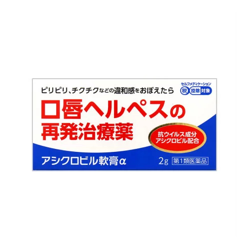 ●アシクロビル軟膏αは、抗ウイルス成分アシクロビルを主成分とした口唇ヘルペスの再発治療薬です。