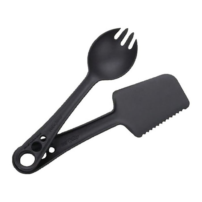 ●スプーン、フォーク、ナイフ、スパチュラ、スプレッダーの5種類の機能を2本に集約。