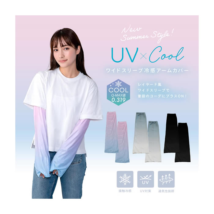 【ゆうパケット配送!送料無料】ワイドスリーブ冷感アームカバー(ポスト投函 追跡ありメール便)(夏 暑さ対策 熱中症 日焼け UVケア UVカット 冷感 ひんやり)