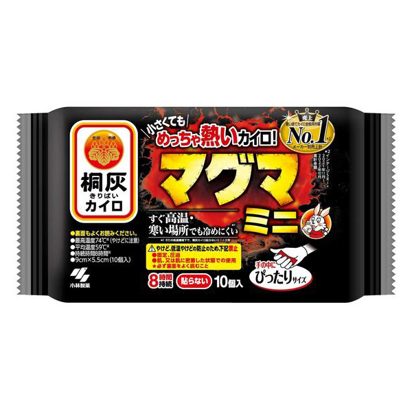 | 検索用文言 | [小林製薬]桐灰カイロ マグマ 貼らない ミニ 10個入 (8時間持続 冷え対策 防寒グッズ 貼らないタイプ めっちゃ熱い) |