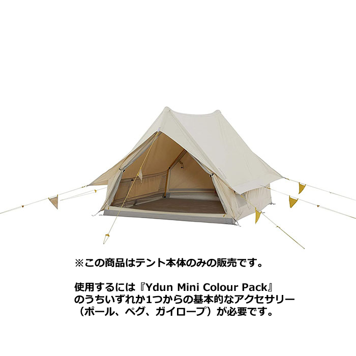 | 品番 | 148051※この商品はテント本体のみの販売です。使用するには『Ydun Mini Colour Pack』のうちいずれか1つからの基本的なアクセサリー(ポール、ペグ、ガイロープ)が必要です。 |