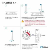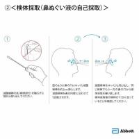 用法 用量 | <使用方法> 検査を実施する前に、時計かタイマーを準備してください。 冷蔵保存していた場合は、検査の30分前に15〜30℃に戻してください。 ●検査のしかた <検査の準備> 1.抽出液アンプルのタブをひねってねじ切ります。抽出液が飛び出る可能性があるので、アンプルの液だまり部分ではなく下部を持ち、注ぎ口を上にした状態でねじ切ってください。 2.抽出液アンプルを垂直に保持し、抽出液300μLを検体抽出容器の上限ライン(300μL)まで加えます。なお、全量を滴下しないでください。抽出液が多すぎる場合や不十分な場合、適切な結果が得られないことがあります。 3.抽出液が入った検体抽出容器は検体抽出容器立てに置きます。 <検体採取(鼻腔ぬぐい液の自己採取)> 滅菌綿棒の先(綿球部分)を触らずに袋から取り出してください。 1.図のように鼻の穴にゆっくり滅菌綿棒を約2cm挿入します。 2.滅菌綿棒を鼻の内壁に沿わせて5回転させます。 3.滅菌綿棒をゆっくりと取り出し、同じ綿棒でもう一方の鼻の穴から検体採取を繰り返します。検体採取後の綿棒が十分に湿っていることを確認してください。 <試料調製> 検体を採取後、速やかに試料調製を行ってください。 1.抽出液に検体採取後の綿棒の綿球部分を浸し、管壁に押し付けながら、少なくとも5回は回転させます。 2.その後、検体抽出容器の外側から綿球を指で押さえながら、検体を搾り出します。 3.綿棒の軸のブレークポイントで軸を折ります。 4.検体抽出容器キャップをしっかりとしめ検体抽出容器立てに置きます。 <試料滴下> 1.アルミ袋からテストデバイスを取り出し、平らな面に置きます。 2.検体抽出容器の滴下ノズルのキャップを開け、試料液5滴をテストデバイスの検体添加部に垂直に滴下します。反応が終了するまでテストデバイスを動かさないでください。検体抽出容器内での泡の発生は不正確な結果となる可能性があります。適切な液量が滴下できない場合は、ノズルのつまりが考えられるため、つまりを取るため検体抽出容器を軽く振ってください。 3.使用済み検体抽出容器は滴下ノズルのキャップをしめてから廃棄します。 4.15分後にラインの有無を確認します。反応から20分以上経過したテストデバイスは判定に使用しないでください。 ●判定のしかた テストデバイスの判定部を以下のように判定してください。 ・陽性:テストライン(T)およびコントロールライン(C)にラインが認められた場合 ・陰性:コントロールライン(C)にのみラインが認められ、テストライン(T)にはラインが認められなかった場合 ・判定不能(再検査):コントロールライン(C)にラインが認められなかった場合 |