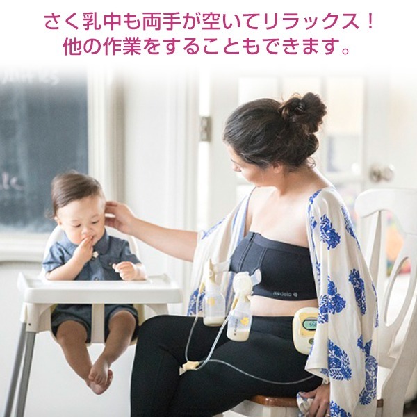 さく乳中も両手が空いてリラックスMedelaのダブル電動さく乳器と合わせてMedelaのさく乳ブラを使用することで、搾乳がより簡単になります。手を使わないので、さく乳中に他の作業をすることもできます。