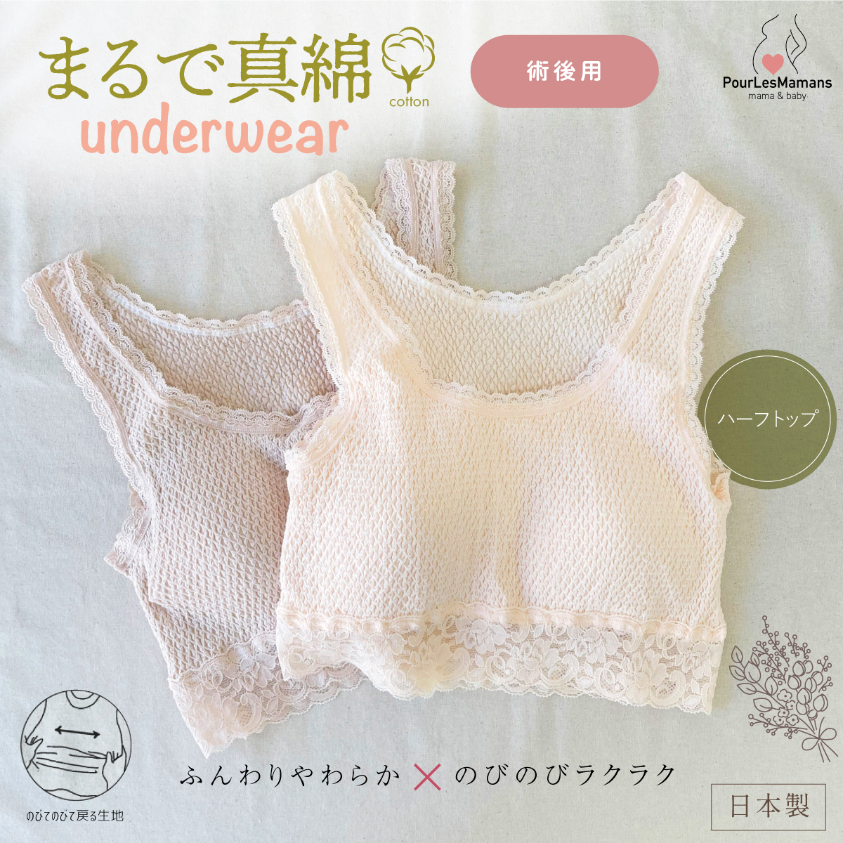 ・ストレスフルな術後も気持ちよく着用できます。