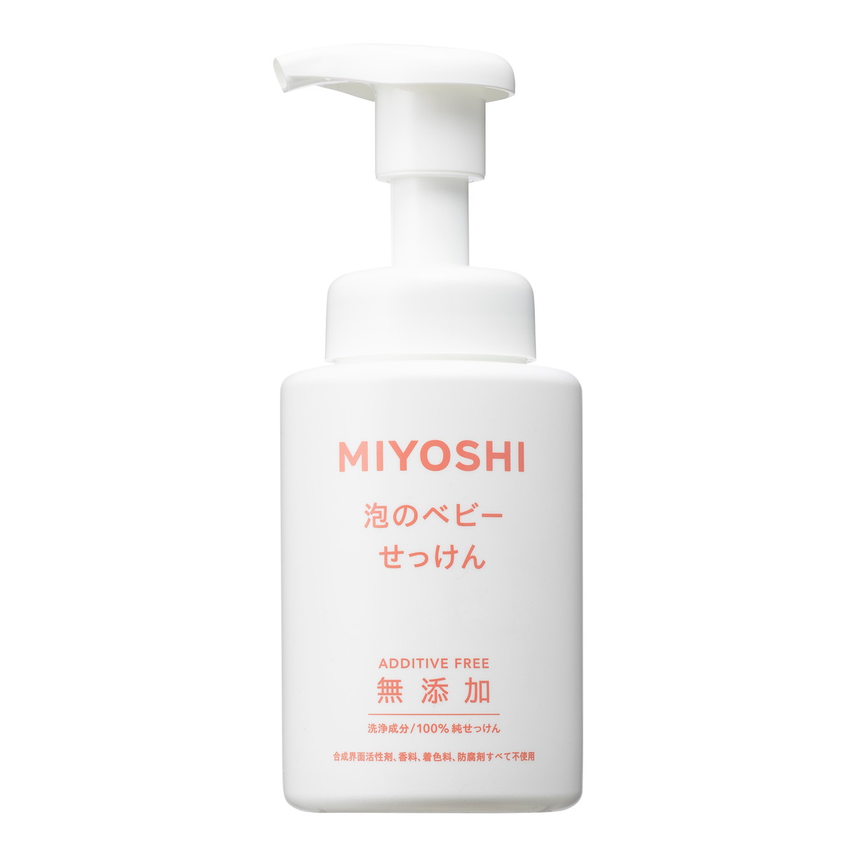 「ミヨシ 無添加 泡で出てくるベビーせっけん ポンプ 250ml(無添加石鹸)」は、お肌が敏感な方も使える、泡で出てくるせっけんです。石けん成分だけで作られた、泡で出るベビー石けん。合成界面活性剤、香料、着色料、防腐剤すべて不使用です。