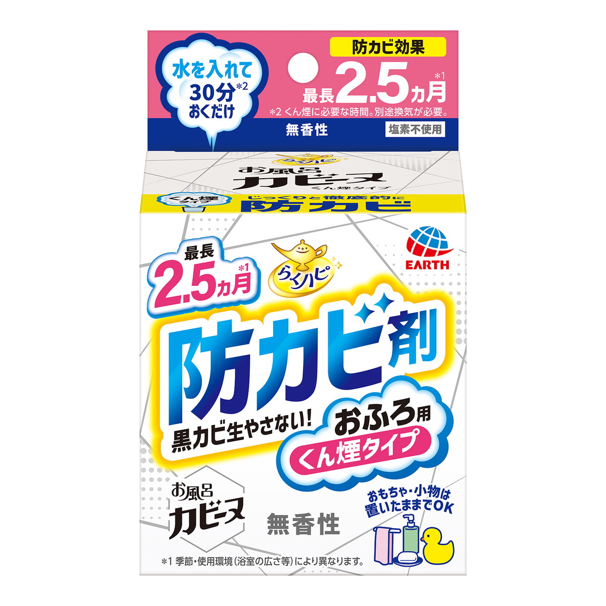最長2.5ヵ月お風呂の黒カビを防ぎ、イヤなニオイもしっかり消臭します。