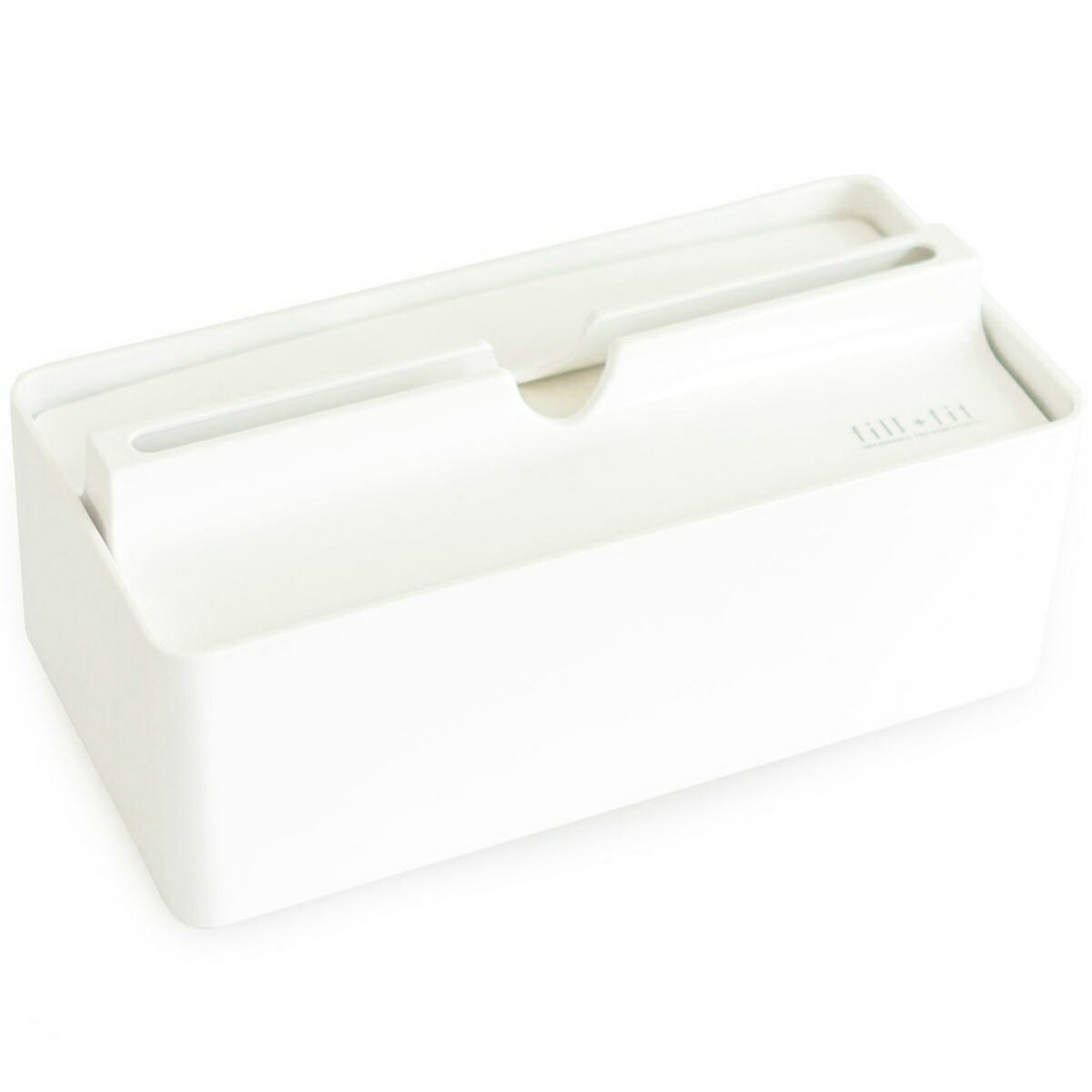 真っ白で光沢のあるペーパータオルケース、「fill+fit ペーパータオルケース」のリップタイプです。