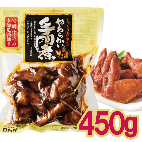 「メール便CP 1通(2袋まで)198円」じっくり 煮込んだ やわらかい 手羽煮 450g 国産 鶏肉 甘辛 直火焼