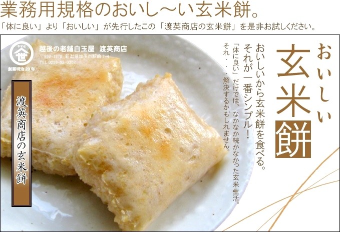 この玄米餅は、新潟県産の水稲もち米玄米を100%原料に使用したものです。粗くついてありますので、玄米のツブツブ食感と香ばしい風味を味わって頂ける商品です。