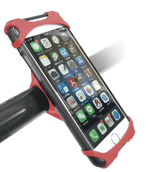 自転車でナビ代わりにスマホが使える自転車用ホルダー。 取付はハンドルに巻き付けるだけ、ワンタッチで工具不要です。
