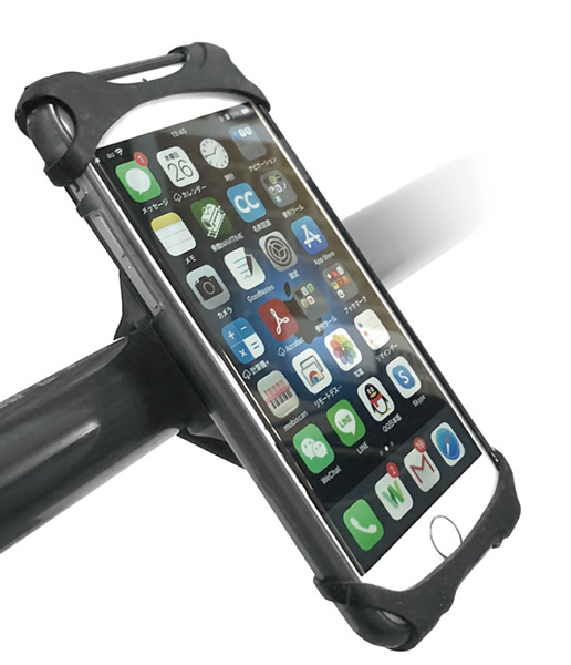 自転車でナビ代わりにスマホが使える自転車用ホルダー。 取付はハンドルに巻き付けるだけ、ワンタッチで工具不要です。