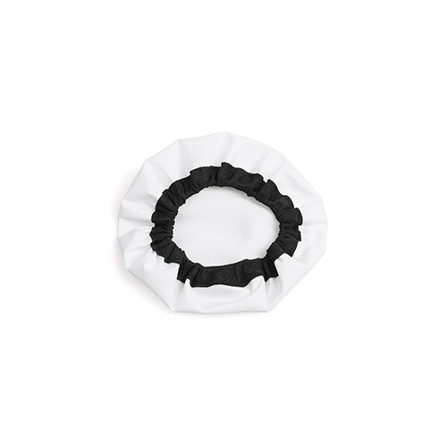 生地はポリエステルの白布製。機材への取り付けはディフューザー開口部のゴム広げてストロボ発光部、リフレクター前面に被せるだけ。簡単にご使用いただけます。