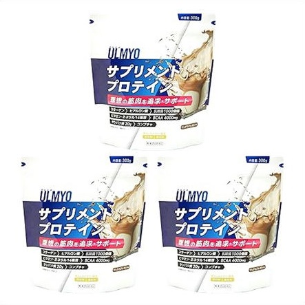 ●製薬会社が開発した理想を追求する「ULMYO(アルミオ)」シリーズの「サプリメントプロテイン」です。サプリメントプロテインというのは、サプリメントで補う動きや体の美しさを作る為の成分と、プロテイン成分による筋肉だけでなく、体を進化させる為の成分を配合しています。味は甘さを少し抑えたカフェオレ味です。たんぱく質は20g/回配合、アミノ酸や14種類のビタミンが取れます。乳酸菌1000億個/回取れ、内側からの環境改善も可能です。コラーゲンやオリジナル原料「ECM・E(ヒアルロン酸)」も配合しており、美しさだけでなく、滑らかな動きをサポートし、スマートに効率の高い生活が行えます。カロリー、脂質ともに低く理想の姿を目指す方に最適です。付属スプーンは1杯あたり約10gです。