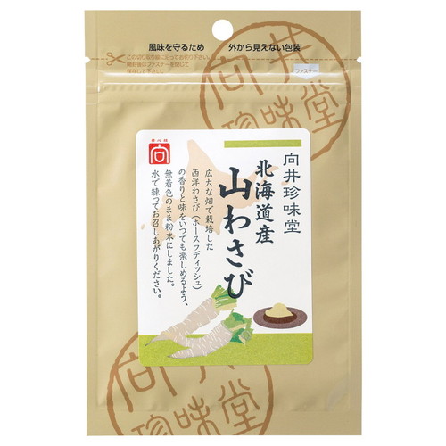 北海道産の山わさび(西洋わさび)の香りと味をいつでも楽しめるよう、無着色のまま粉末にしました。