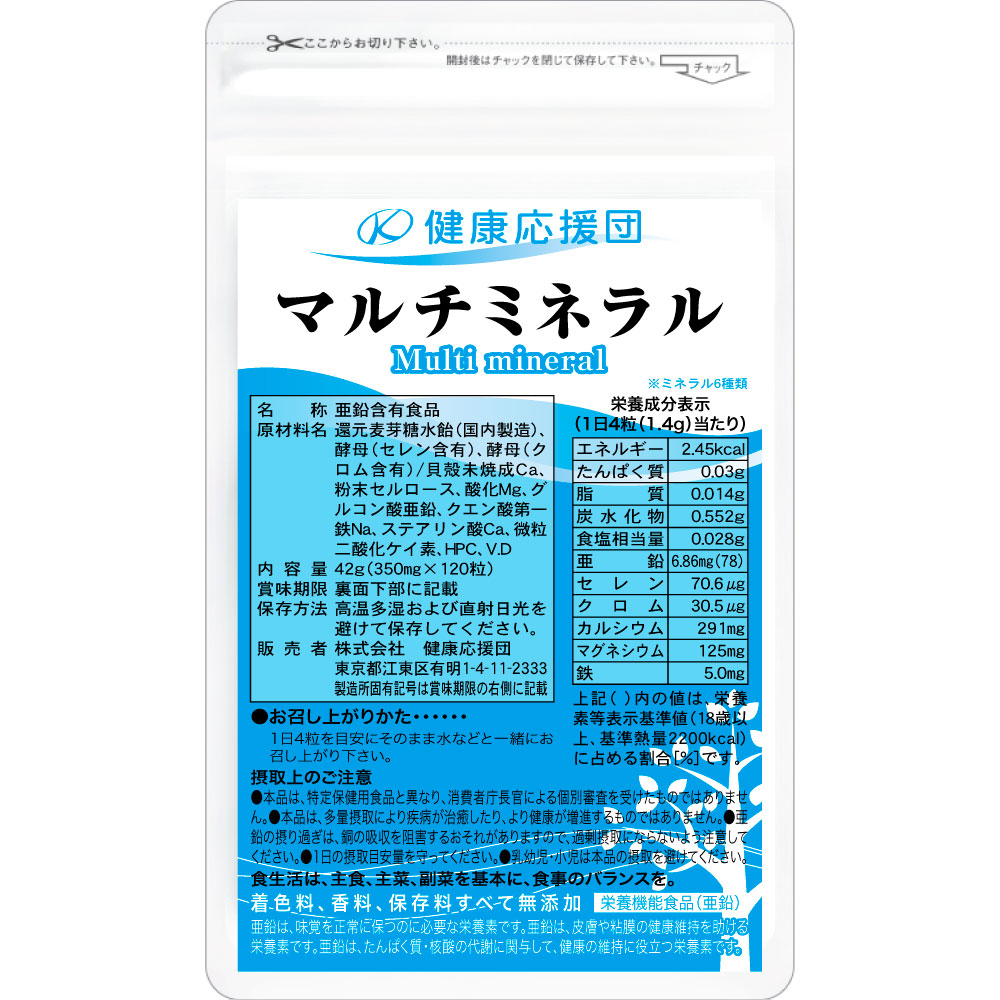 マルチミネラル サプリ 1ヵ月分 1袋 サプリメント ミネラル カルシウム マグネシウム 亜鉛 鉄 セレン クロム 健康応援団