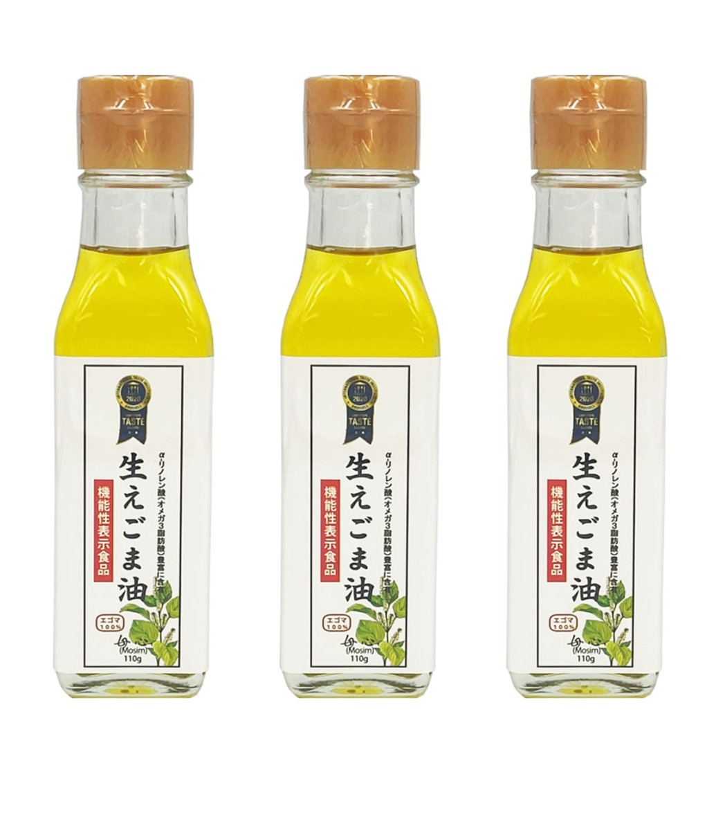4.シソ科の一種であるえごま(荏胡麻)の種を加熱せずに50℃以下で低温圧搾する製造特許で作った「生搾り」の油