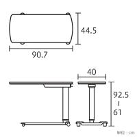 ・本体サイズ幅90.7cm×奥行44.5cm×高さ61〜92.5cm