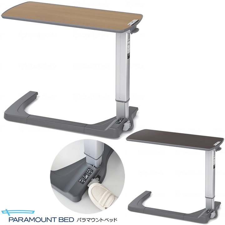 介護ベッド ベッドサイドテーブル 移動ロック付き ガススプリング式 ミディアム ウォールナット KF-2933 KF-2973 パラマウントベッド