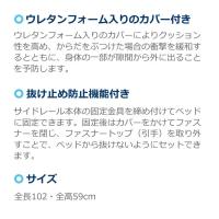 ウレタンフォーム入りのカバーによりクッション性を高め、からだをぶつけた場合の衝撃を緩和するとともに、身体の一部が隙間から外に出ることを予防します。