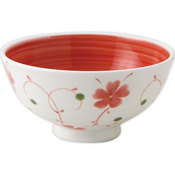 内側の赤は食欲をそそる色であると同時に、ごはんの色をはっきりと引き立てます。視力の弱い方にやさしい茶碗です。